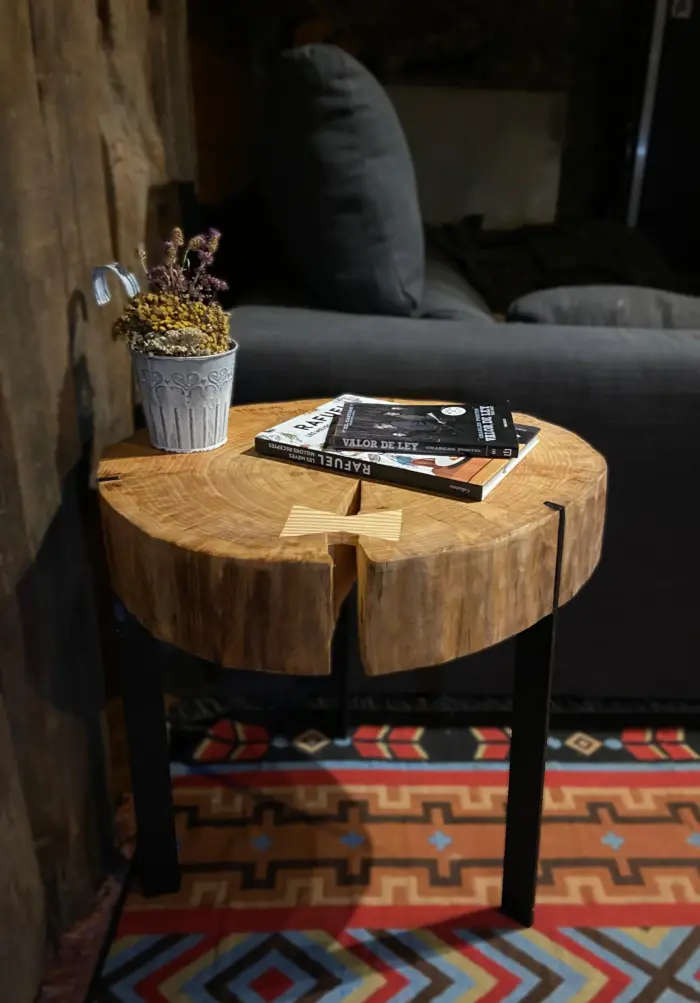 Descubre la lámpara Black Canyon, una pieza única que resalta por su robustez y encanto rústico. Elaborada con una traviesa de tren recuperada y tratada, esta lámpara añade un toque distintivo a cualquier espacio.