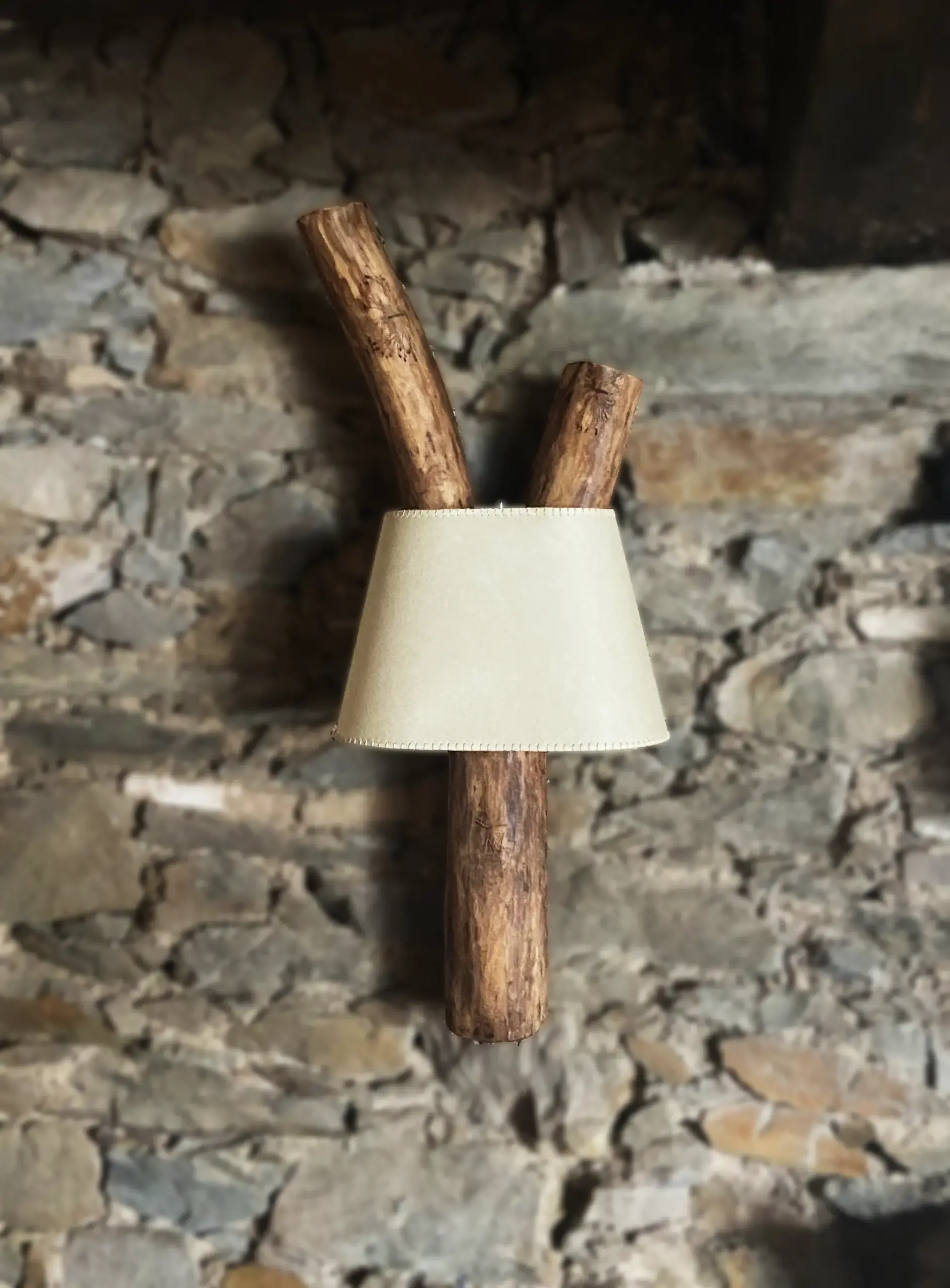 Lámpara de pared hecha con madera de Fresno con encaje para colgar, con opción de instalar enchufe e interruptor. Disponible en ambas configuraciones para adaptarse a tus necesidades.
